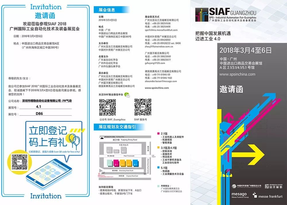 我公司已参加SIAF 2018广州国际工业自动化技术及装备展览会,现诚邀阁下于2018年3月4至6日莅临我司展台参观。感谢您的支持!